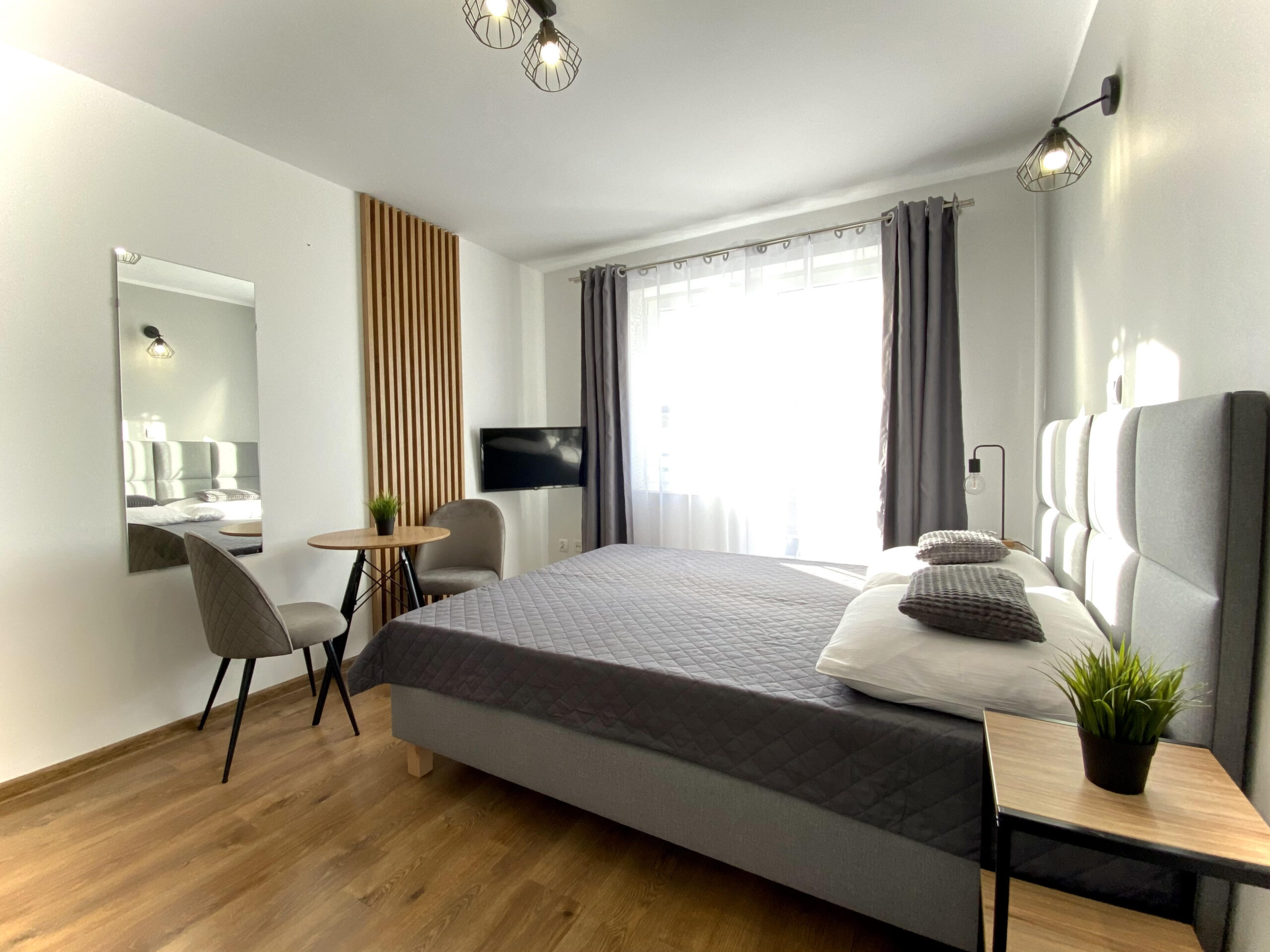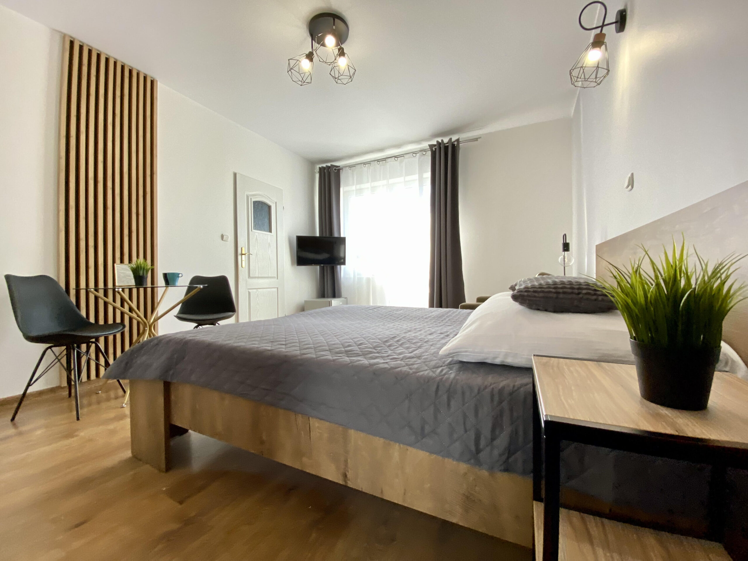 Komfortowe i słoneczne dwuosobowe pokoje z łożem malzenskim i łazienką. Poszczególne pokoje posiadają balkony. Istnieje możliwość zapewnienia dwóch osobnych łóżek. Dodatkowo W pokojach znajdują się 1 osobowe łóżka, dzięki którym jest możliwość zarezerwowania pobytu z dzieckiem 2+1. Pokój wyposażony jest w telewizor, lodówkę, czajnik, podstawowe naczynia.